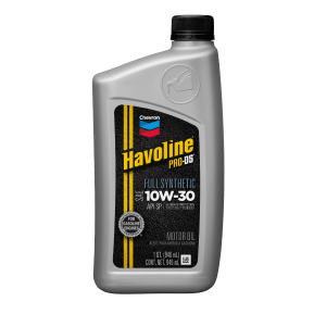 Havoline PRO-DS Full Synthetic Motor Oils use the latest full synthetic base oils and special cleaning additives including antioxidants and friction modifiers to provide unmatched protection and performance. Formulated to provide outstanding protection against harmful engine deposits, while providing excellent oxidation protection and volatility control, and superior cold temperature performance over part synthetic and mineral motor oils.